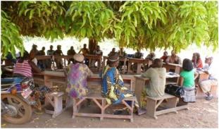 A lively discussion among Beninese farmers on cashew production